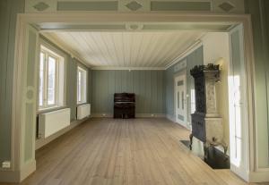 Opprinnelige farger Malejobben har vært en spesiell jobb i seg selv. Gjennom årene har det vært mange forskjellige farger på veggene. Malerne har skrept seg gjennom lagene og ved hjelp av ekspertisen til Thorolv Hartviksen og Marit Odden har de funnet ut det som er tilnærmet likt de originale fargene. Med andre ord fremstår prestegården nå ganske lik som den gjorde da bygget sto gjenoppbygd for 100 år siden. På enkelte flater var det så mye som 15 ulike lag med maling. Det er nesten ingen rom som har like farger, og håndtverkerne og prosjektledelsen har gjort en solid innsats for å få rommene til å være tidsriktige – både for nåtid og fortid. Det gamle uttrykket er beholdt så langt det lar seg gjøre, men selvsagt er huset modernisert etter dagens standarder.
